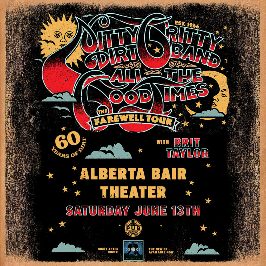 For nearly six decades, the three-time GRAMMY® Award-winning Nitty Gritty Dirt Band has entertained audi-ences with their top-shelf musicianship and timeless hits. Now the time has come for the band who has carried a torch for American country and roots music to say so long to the highways and byways they’ve crossed an unim-aginable number of times throughout their career.